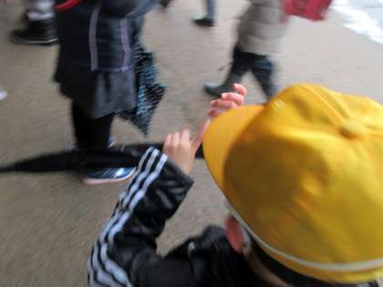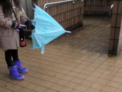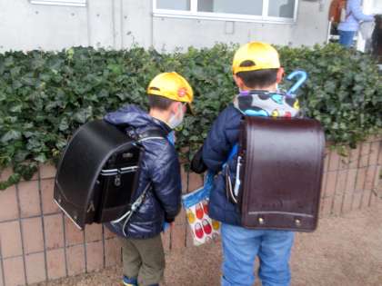 子供たちは玄関前の屋根付きのポーチで、傘の水をしっかりときり、きちんとまとめて玄関に入っていきます。