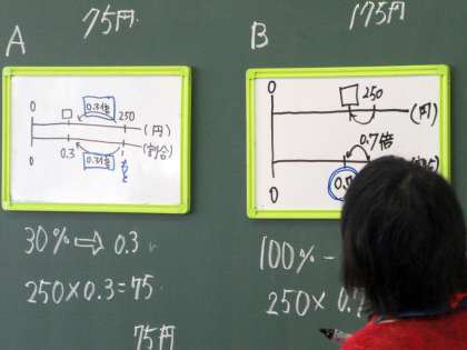 前日学習したことをもとに、数直線を使って金額を探ります。