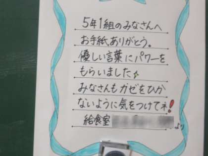 給食週間にちなんで、調理員さんに感謝の手紙を届けました。