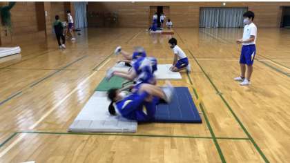 早速、前転を組み合わせた素敵な演技をしている団が出てきました。今後も楽しみです。