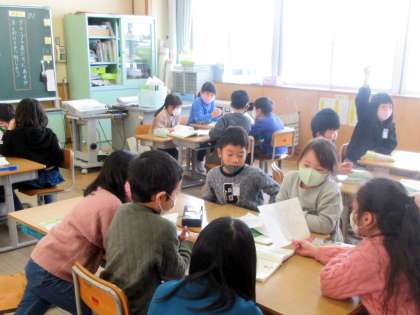 本から見付けた新しい遊びの遊び方をグループの友達に説明します。