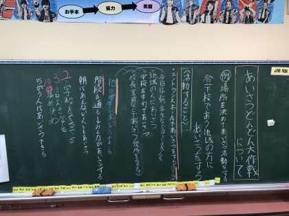 運営委員会が提案する「あいさつどんどん大作戦」の活動に向けて、6年生ではどのような活動をするか話し合いました。