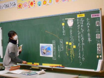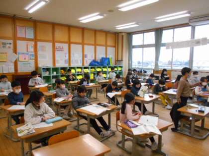 1年国語科「たぬきの糸車」の学習です。たぬきのしたことやおかみさんが思ったことを叙述から見つけて書き、話し合っています。
