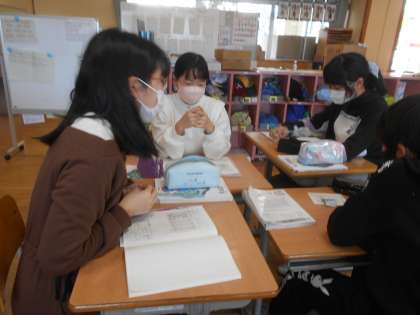 自分で考えを持ち、友達と自分の考えを伝え合っています。