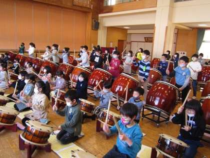学年でも「まごころ」を練習しています。練習を重ねているうちに力強く叩くことができるようになってきたり、自信をもって演奏できるようになってきました。