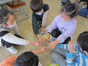 童歌の学習です。「ずいずいずっころばし」や「あんたがたどこさ」、「なべなべそこぬけ」の3曲をみんなで歌ったり遊んでみたりしました。