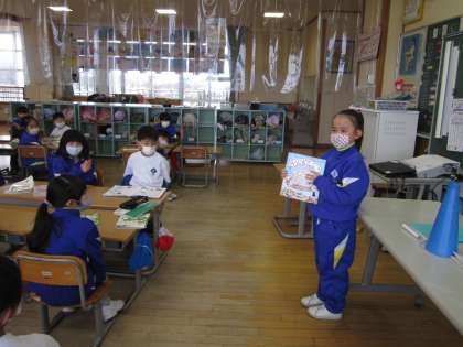 小学生になって、いろいろな本に親しむ機会が増えた1年生。お気に入りの本をグループなどで紹介し合いました。