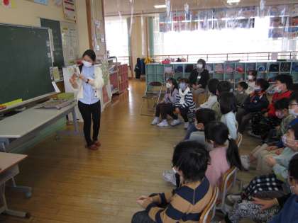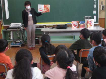 1年生は、富山市立図書館の司書の先生方から本をたくさん読んでいただきました。「食べ物の物語」ってたくさんあるんだなあ、とおいしそうな様子を想像しながらお話を楽しみました。休み時間に早速お借りした本を手に取っている人もいました。これからも読書をどんどん楽しみましょう、