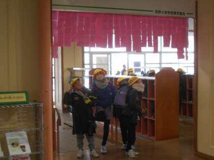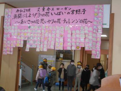 児童玄関には、「あいさつゲート」も登場しました。2月下旬まで作戦は続きます。