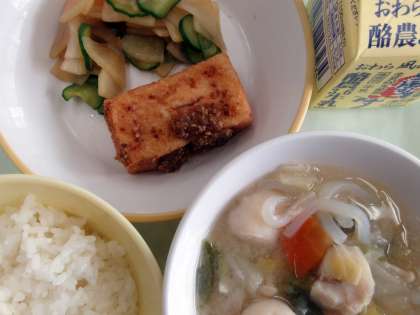 今日のごまだれかけは、淡泊な味の揚げ出し豆腐に、ごまがたっぷりと入ったおいしいたれがかかっていて、ごはんとよく合う一品です。