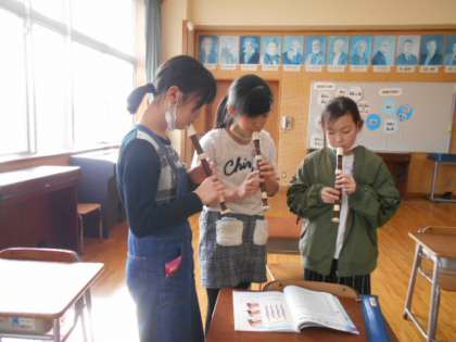 オーラリーは、3フレーズ目から高音が多く、ブレスコントロールがポイントとなります。友達と教え合いながら練習しました。