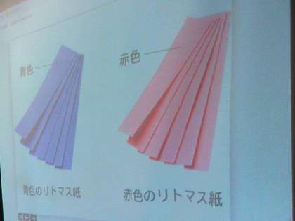 リトマス試験紙を使って、水溶液の性質を調べます。