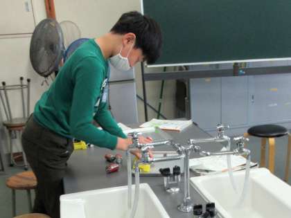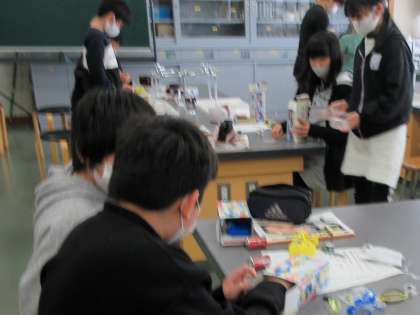 理科の実験中。 電磁石パワーを強くする方法を見付ける実験です。