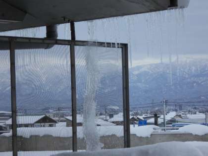 今日のように冷え込むと、校舎のあちこちにつららが。