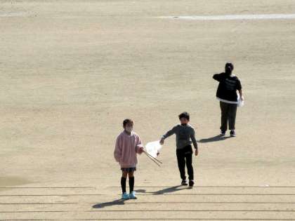 総合的な学習の時間に「環境問題」に取り組んでいる4年生。雪が溶けた校舎周りのゴミ拾いを行っています。
