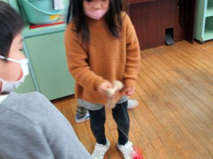 けん玉に挑戦している子