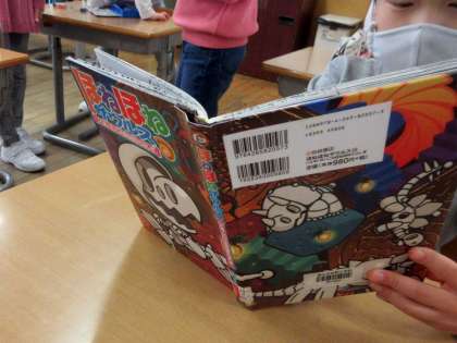 図書館から借りてきた本を読んでいる子