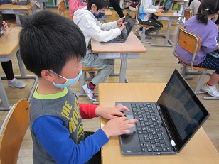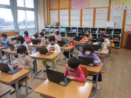 初めてパソコンを触った子供も多い2年生。「クリック」や「ログイン」という言葉から覚え、パソコン操作の練習をしてみました。最初は「むずかしい」「分からない」という不安な声もたくさん聞こえていましたが、触っていくうちに「できた!」「次の画面開くことができた」とできることが増え、体験しながら学んでいた子供たちです。
