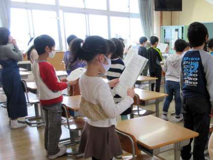 おはようございます。 週末の朝です。 朝の会は全校音楽から。