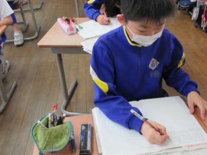 テストやノートを書く前(ビフォー)に、美4(姿勢・持ち方・文字・気持ち)を確認します。