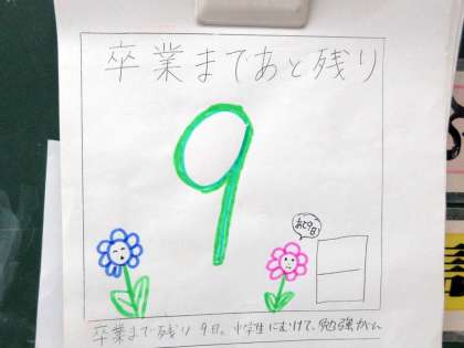 教室のカウントダウン日めくりが、とうとう一ケタ。