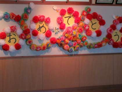 校内に卒業掲示がたくさん飾られています。
