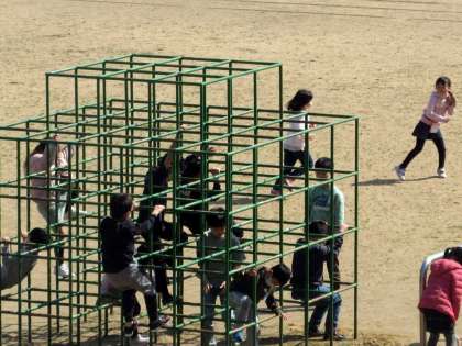 昼休み、たくさんの子供たちがグラウンドへ。