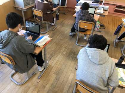 一人一台の端末を利用する6年生。あっという間に操作に慣れる6年生。
