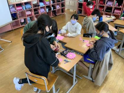 今までお世話になった地域の方に感謝の気持ちを伝えるために、メダル作りを行っています。