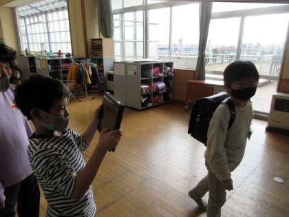 そして、自撮りした自分たちの発表練習動画を見て、発表の仕方を工夫する。