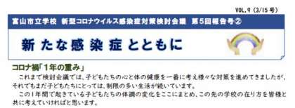 「富山市立学校 新型コロナウイルス感染症対策検討会議だよりvol.9」を配布文書{富山市教育委員会より」にアップロードしました。