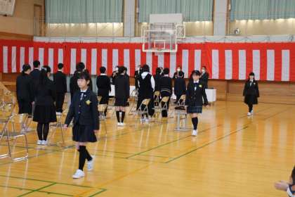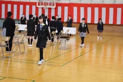 退場は、担任ではなく、子供たちが先を歩きました。6年1組を巣立ち、一人一人が未来に向かって歩んでいくという思いが込められています。