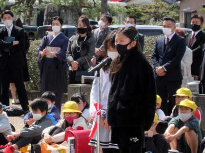 4年生と 5年生の代表が 6年生に言葉をおくりました