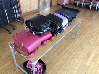 月曜日と火曜日の13:00〜16:00の間、ランドセルの寄付を受け付けています。続々とランドセルが集まってきています。1つのランドセルにつき、500円の寄付金が必要です。事前連絡がなくても構いません。明日もお待ちしております。