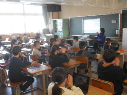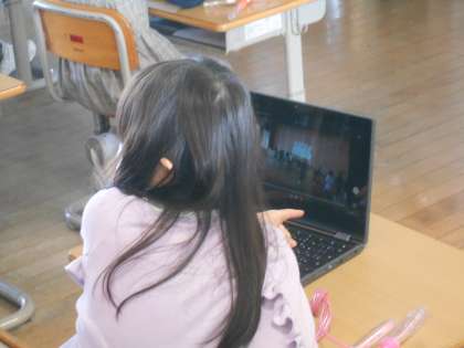 子供たち一人一人が撮影してきた動画をみんなで見合っています。最後は、みんなで拍手!互いのよいところを認め合っている姿が微笑ましいです。