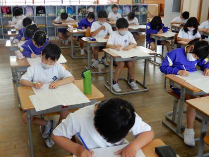 初めての学力調査に挑んだ3年生。 集中して取り組むことができました。