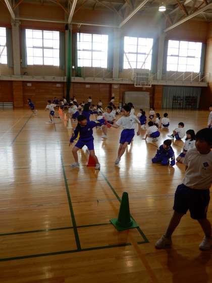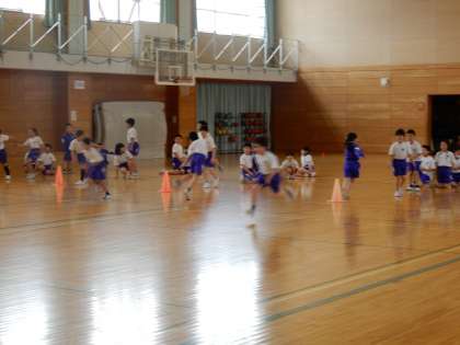 2年生まではリングバトンでしたが、3年生からは通常のバトンでバトンパスです。ポイントを確かめて熱心に練習しました。