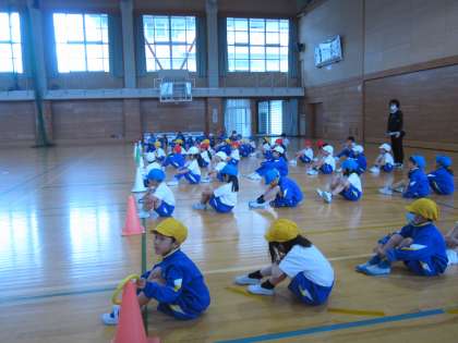 色団が決まって初めての体育です。姿勢や整列の素早さも2年生らしく、頼もしい姿が見られました。