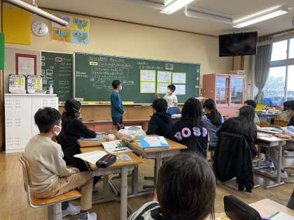 グループで話合い、深めた考えをクラスの仲間に伝えます。
