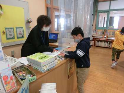 今年度の図書の貸し出しが始まりました。図書館司書の先生と約束事を確認するオリエンテェーションを終えたクラスから、貸し出しが始まります。のぞみ、あおぞら級の低・中学年の子供たちは、今日貸し出しが始まり、とてもうれしそうでした。たくさん本に親しんでほしいです。