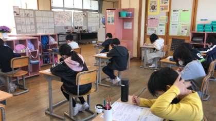 5年生の算数科。初めてのテストです。実力は発揮できたでしょうか?間違えたところは、復習をし、次につなげましょう。