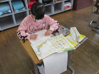 東道府県の位置と名前を地図帳で調べて、白地図に書き込みました。