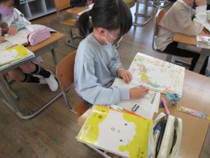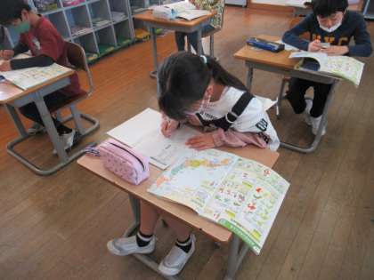 地図帳を使って、都道府県の位置や隣接する都道府県を調べました。
