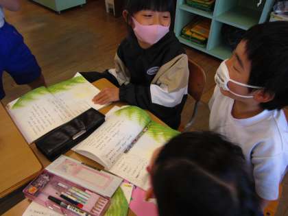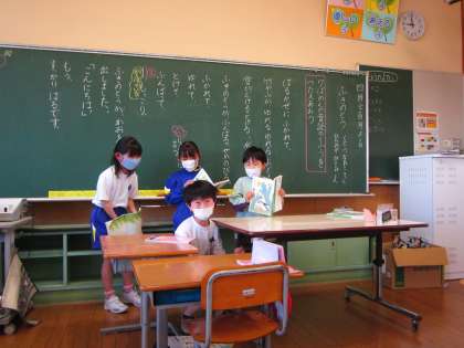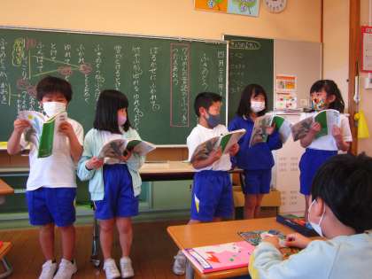 グループごとに、音読を発表し合いました。声をだんだん大きくしたり、ふきのとうが頑張っている様子に動きをつけたりと、それぞれのグループが工夫して音読していました。