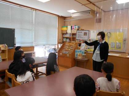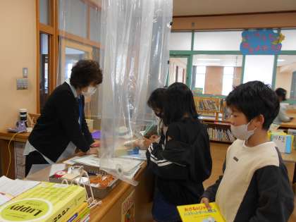図書館司書の先生から、図書室の使い方や本の借り方返し方についての約束を聞きました。4年生から本の予約ができることを知り、大喜びの子供たち。早速本を借り、教室に戻り、本を丁寧に扱うことをしっかり守ろうとしていました。