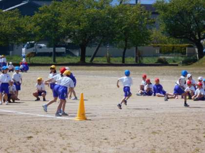 今日も気持ちのよい日差しに恵まれ、朝からいろいろな学習活動が展開されています。さっそくグラウンドで走る学年の姿もありました。