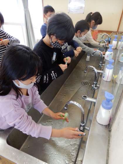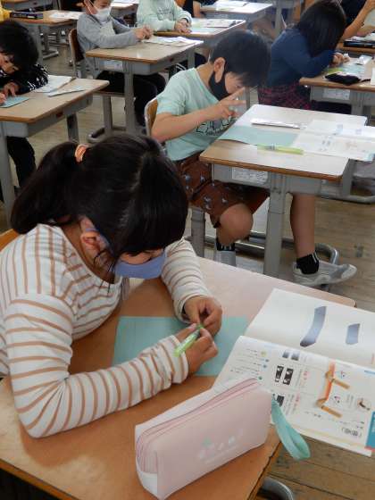 初めての書写の学習です。水筆を使って、筆遣いについて学習しました。