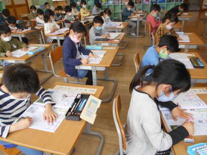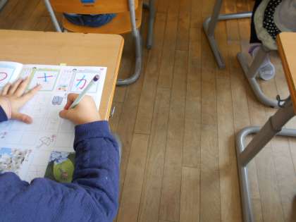 入学して約1ヶ月が経ちました。ひらがなの練習も進んでいます。どんなところを気をつけると正しいきれいなひらがなが書けるのかを子供たちで考えて学習しています。