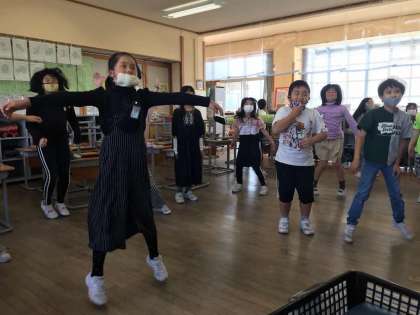 業間にラジオ体操を行いました。お昼休みには自主的にバトンパスの練習をしたりと体力つくりに進んで取り組んでいます。