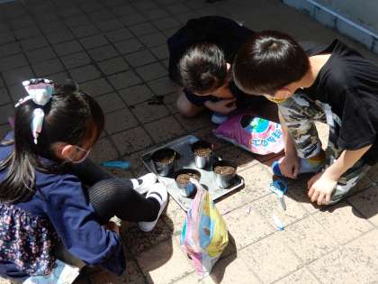 先日、観察した種をポットに植えました。明日から世話を続け、観察をしていきましょう。